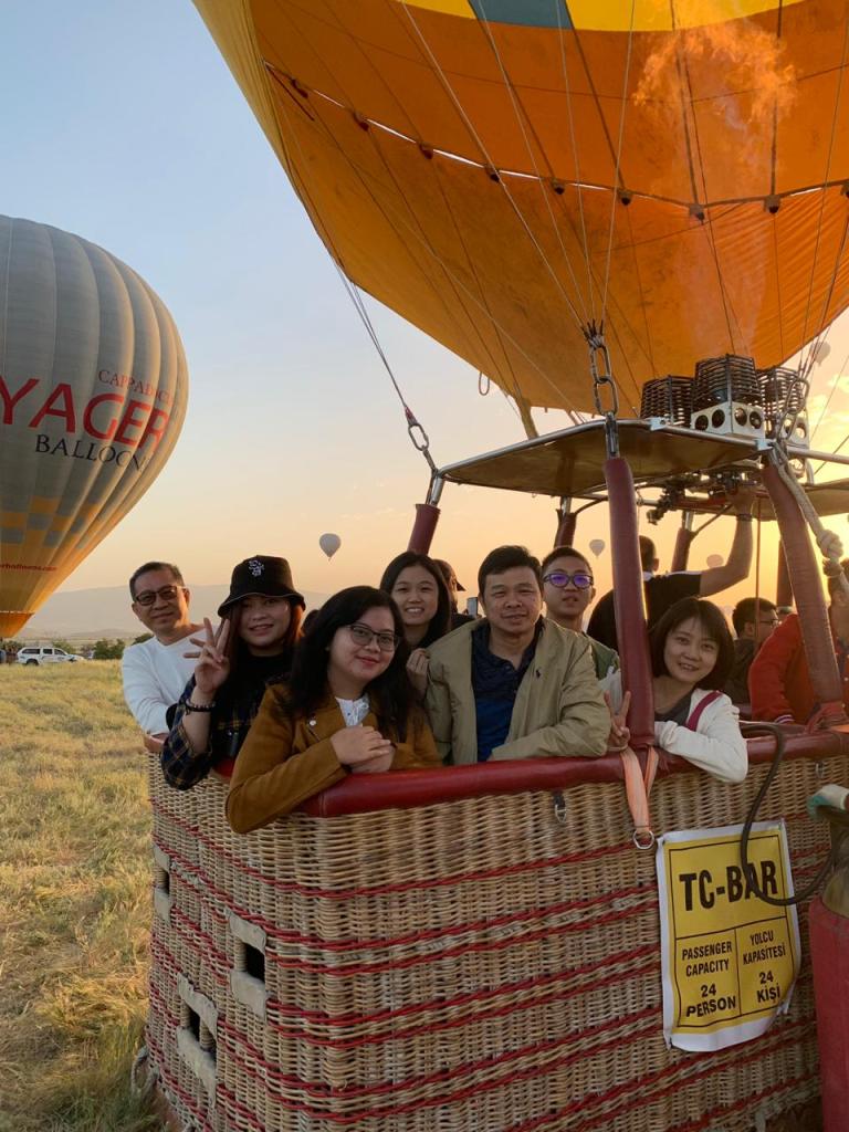 Pengalaman naik balon menurutku seru banget. Kalian akan dibawa naik dan turun melewati lembah-lembah yang berlekuk. Selain itu, kalian juga bisa melihat banyak sekali balon yang terbang di sekitar kalian dengan warna dan motif parasut yang variatif.