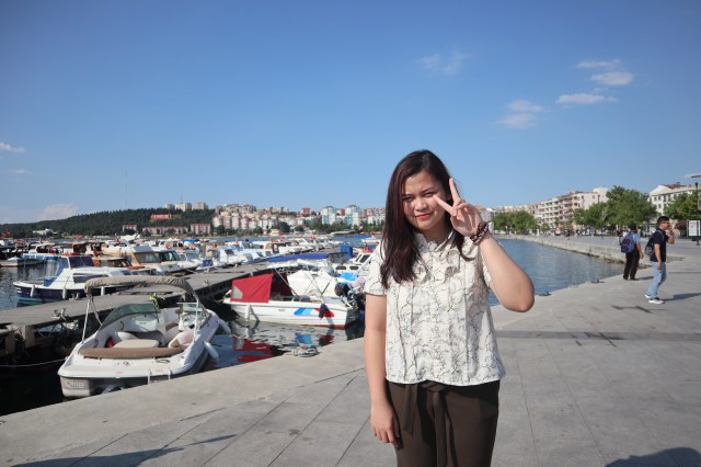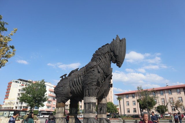 Selesai makan kami melanjutkan perjalanan ke pelabuhan yang jaraknya lumayan jauh. Namun, perjalanan di kapal enggak terlalu lama sih, kurang lebih hanya 1 jam. Kami menyebrang menuju kota Canakkale, tepatnya mengunjungi Trojan Horse Statue in Troy. Bagi kalian yang sudah pernah nonton film Troy (2004) pasti tau deh sejarahnya. Canakkale merupakan kota pelabuhan, sehingga kalian akan menemukan banyak sekali kapal-kapal kecil hingga besar berlabuh disana. Patung Kuda Troy letaknya enggak jauh dari pelabuhan, jadi setelah berfoto kami bisa menyusuri pinggir pelabuhan sembari menikmati angin sore. Perjalanan hari itu pun berakhir, kami segera diantar ke hotel untuk beristirahat. Hotel yang kami tempati bernama Iris Hotel. Hotel ini berada di tengah perumahan penduduk, sangat sepi, tidak terlalu besar tapi memiliki pemandangan pantai yang bagus. Restoran hotel menghadap langsung ke pantai.