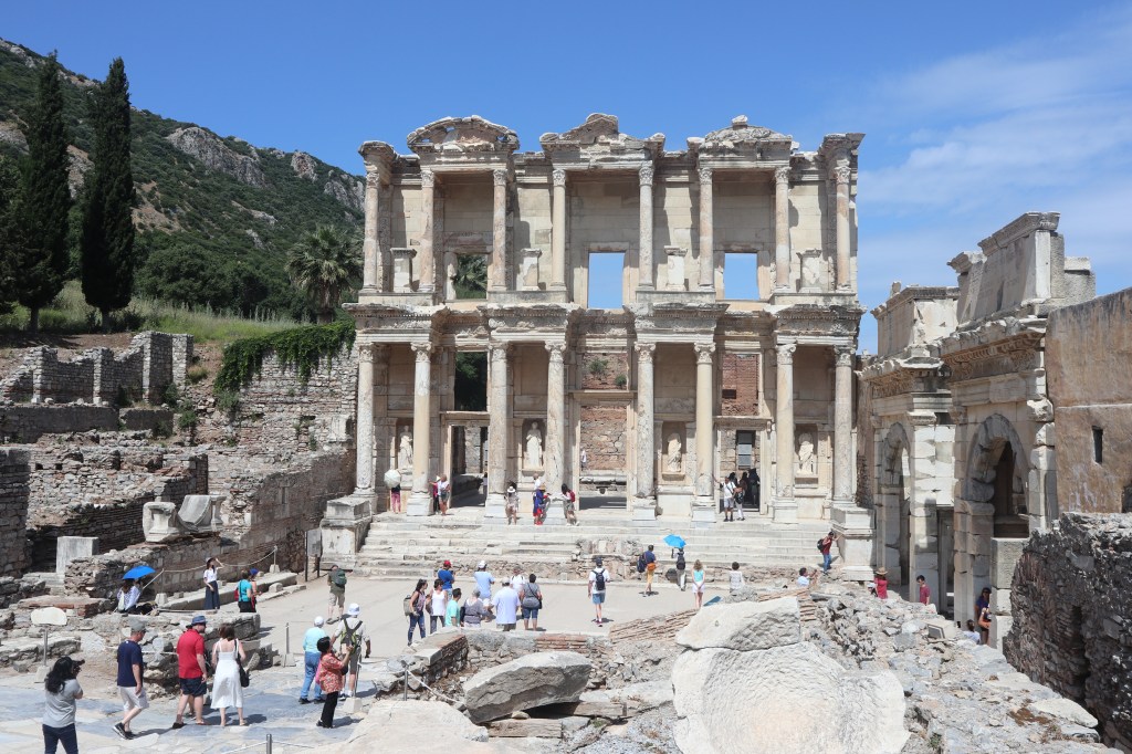 Perjalanan hari ketiga dimulai dengan mengunjungi Ephesus City. Tapi sebelum menuju kesana, kami terlebih dulu diajak ke toko pemerintah. Nama tokonya adalah Leather Factory Outlet. Disini produk unggulannya adalah jaket kulit dari biri-biri. Model jaketnya bagus karena memang biasanya merek-merek terkenal seperti Burberry, LV, dll membeli barang dari toko ini untuk dilabeli oleh mereka. Jadi bisa dibilang kualitasnya sama tapi harganya lebih murah. Jaket disini sangat ringan, enggak mudah pecah-pecah dan hebatnya lagi meskipun dilipat-lipat kayak gimana juga enggak lecek sama sekali. Bagi yang berminat beli disini ya jangan sedih kalo gak ada mereknya. Selain itu, disini juga menjual berbagai dompet dan tas mahal kayak Hermes dan LV. Tapi ya kembali lagi, model dan kualitas kulitnya sama tapi enggak bermerek. Soalnya toko ini umumnya hanya mengekspor kulitnya saja lalu proses produksinya ya diserahkan kepada brand tersebut. Jadi, tas yang dijual disini sebenarnya adalah KW Super sih. Untuk harga sendiri, menurutku sih masih mahal ya karena aku bukan anak sultan huehehehe. Jaket kulitnya dijual dengan harga 15 juta ke atas, kalo tas dan dompet aku lupa.