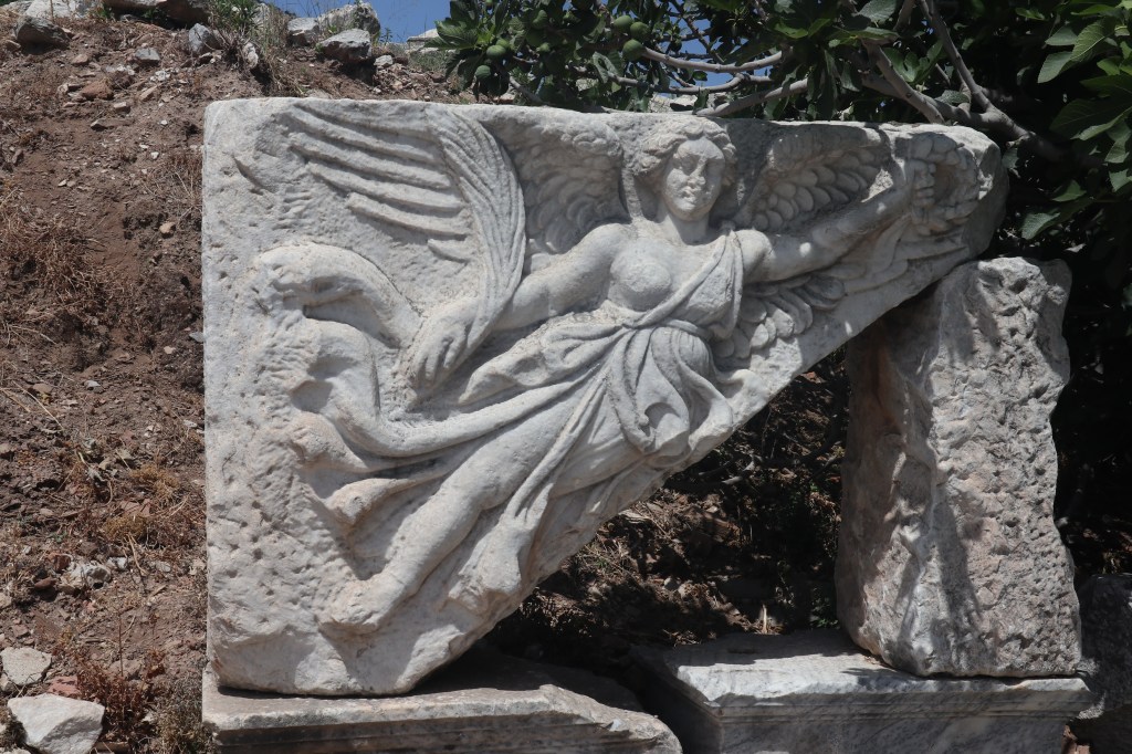 Selanjutnya, kami menuju destinasi yang sebenarnya yaitu Ephesus City. Disini kamu bisa melihat sisa bangunan kejayaan Romawi Kuno. Ephesus pada awalnya adalah kota Yunani kuno, namun kemudian direbut dan mengalami kejayaan pada masa kerajaan Romawi. Sehingga kamu dapat melihat perpaduan arsitektur Yunani dan Romawi dalam satu kawasan. Kota ini membuktikan adanya peradaban modern pada dahulu kala. Ok, gambar di sebelah kanan itu adalah Goddess of Victory. Logo sepatu Nike mengambil intisari dari legenda ini lho guys..