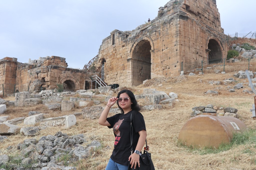 Aku berkeliling-keliling area tersebut lalu menuju Hierapolis Ancient City yang bentuknya adalah bangunan kuno dengan stadium yang super besaaaar. Jarak dari pool menuju bangunan ini cukup jauh dan melewati bukit berbatu yang gersang. Tapi pemandangan di Ancient City ini bagus sekali. Cotton Castle dan kota dibawahnya terlihat jelas.