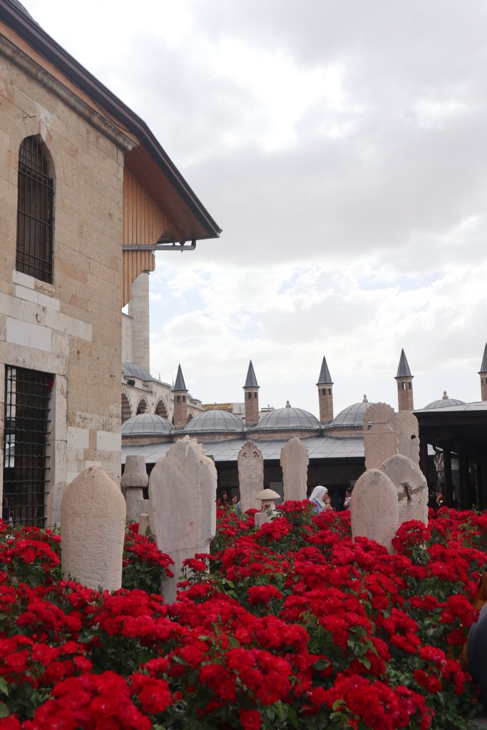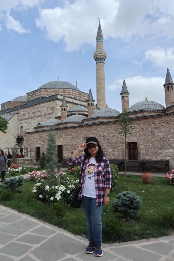 Beberapa jam perjalanan, kami akhirnya kami sampai di Mevlana Museum Konya. Mevlana Museum adalah tempat bersemayamnya sang pujangga Turki sekaligus pencipta tari Sufi, yaitu Jalaludin Rumi. Kamu boleh masuk ke dalam museum ini dan melihat kedalam namun kakimu harus dibungkus oleh plastik yang disediakan. Museum ini sangat bagus karena dihiasi oleh banyak sekali bunga mawar merah serta mereka juga punya taman bunga yang luas.