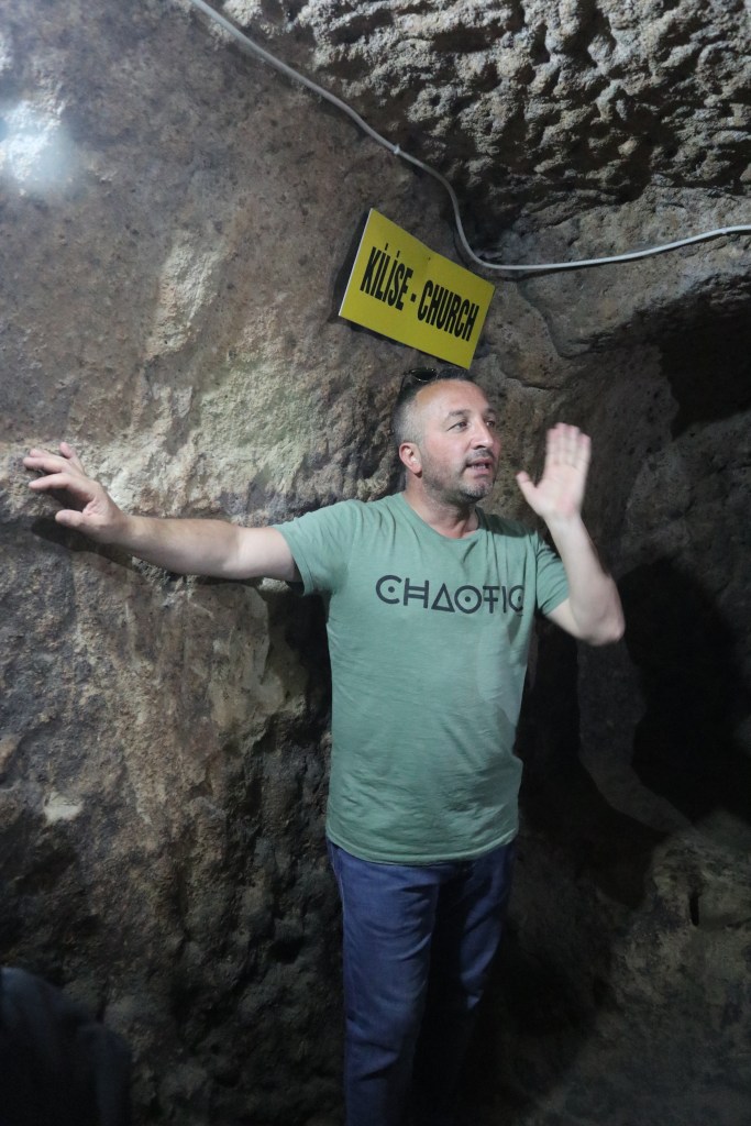 Sesudah naik balon, kami diantarkan ke hotel untuk sekedar mandi atau sarapan. Perjalanan hari ini dimulai dengan mengunjungi Underground City alias kota bawah tanah. Menurutku ini bukan sekedar rumah bawah tanah tapi memang beneran kota karena ada akses yang menghubungkan satu area ke area lain seperti layaknya jalan raya. Area-areanya juga bermacam-macam, dan fungsinya bukan hanya tempat tinggal penduduk aja tapi ada juga tempat ibadah, dll. Suhu udara di kota bawah tanah itu sangat sejuk, seperti pake AC lho. Padahal waktu naik ke permukaan, wah super duper panas kayak dipanggang.